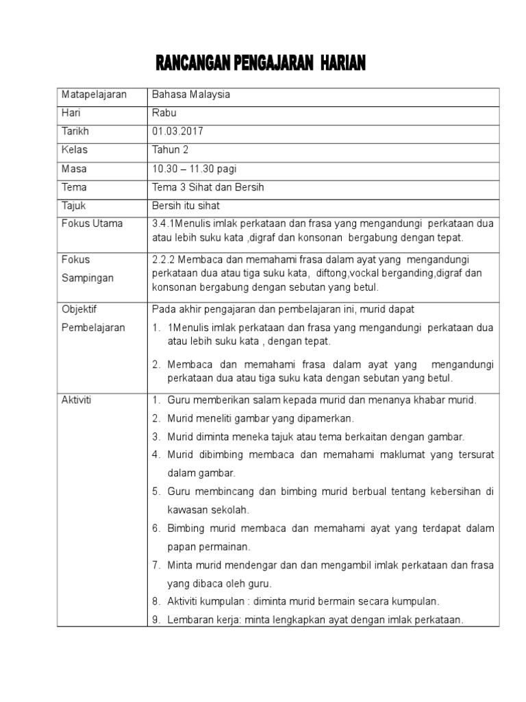 Rph Aktiviti Di Padang Sekolah. Mengimlakkan menyebut membaca supaya ditulis oleh orang lain merencanakan. 33 Membina dan menulis perkataan frasa dan ayat dengan betul 34 Menulis imlak dengan tepat.