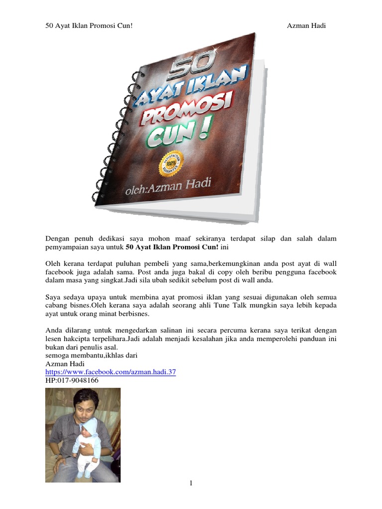 Maka ayat promosi B lebih berpengaruh untuk membuatkan pelanggan membeli. Katakan anda jual jubah dan nak bagi diskaun RM50 kepada pelanggan. BELAJAR DARI KESILAPAN ORANG LAIN Dalam bisnes biasanya kita tak akan dapat lari dari melakukan kesilapan.