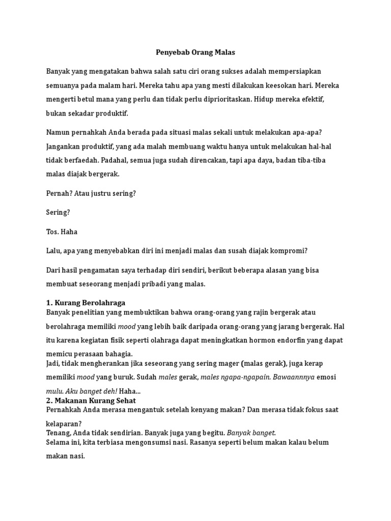 Penyebab Orang Malas Oleh Dian Nita Zullina