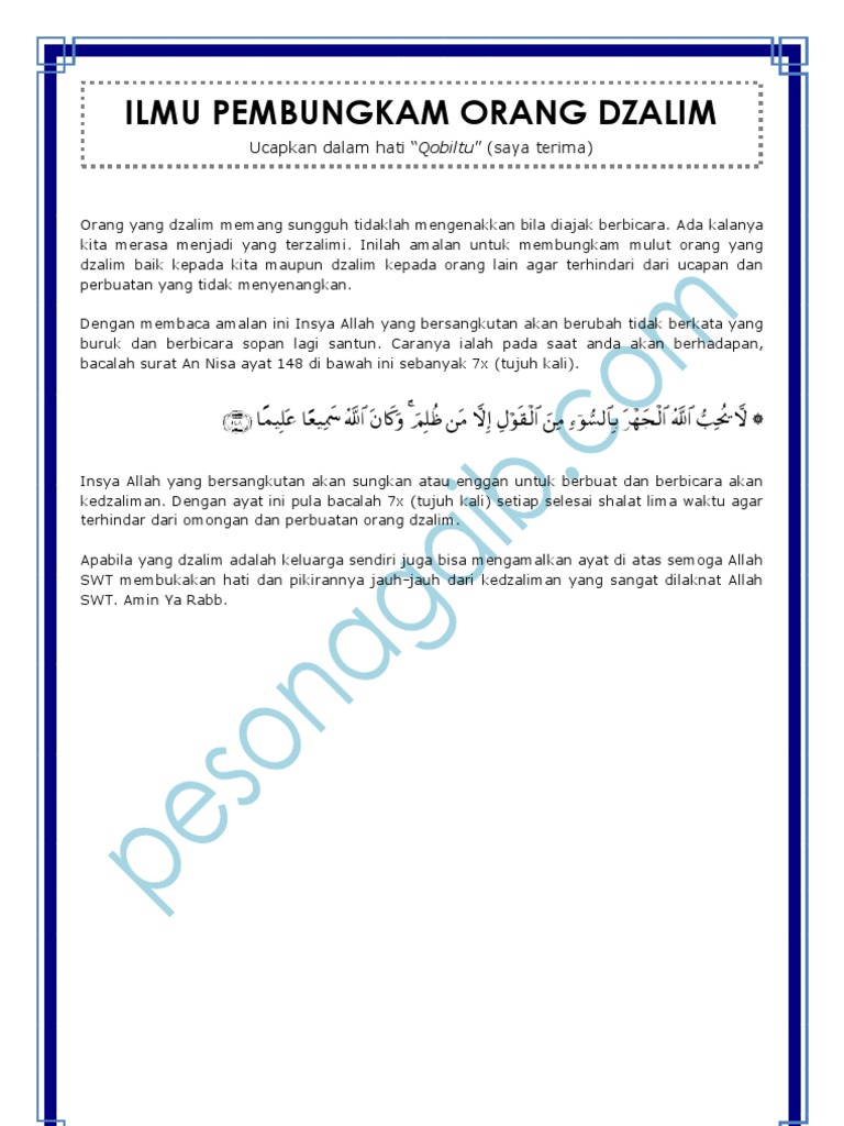 01012000 amalan pengunci mulut dari hizib autad adalah salah satu artikel yang paling banyak dicari dan diminati oleh banyak orang. Tetapi yang keluar dari mulut berasal dari hati. 19102015 ILMU PENGUNCI BULUH BUNTU AYAT AL-BAQOROH tersebut dari Bapak Ustaadz Viky dan saya mohon izin untuk mengamalkannya lillaahi Taaalaa.